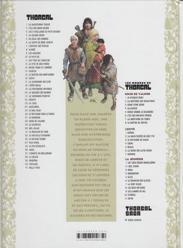 remarques: | sur le chemin du retour depuis la terre des glaces, le drakkar de Thorgal, Jolan et Boreale, la jeune atlante s'échoue sur des récifs Thorgal part seul chercher des renforts, après avoir pris pied dans une région inconnue, il est capturé par un chef viking et pour recevoir de l'aide, Thorgal doit effectuer une mission difficile: récupérer la pierre aux mille yeux durant cette recherche, Thorgal est sauvé par une magicienne qui lui conte >> pl. 14 la légende de la déesse Skaedhi et de la pierre aux mille yeux >> p. 19 les chasseurs de vipères rouges avec le coq noir tétras après bien des imprévus, Thorgal parviendra à remplir sa mission et avec un nouveau drakkar, il partira sans autre histoire pour son village >> p. 47 Thorgal béatement satisfait retrouve Aaricia avec Jolan et Boreale un 41ème récit qui ne vaut pas pipette ni pour le texte ni pour le graphisme dernier album de la série: - tome 42, Özurr le Varègue (2024) non collectionné ici il existe une deuxième série Thorgal: Thorgal Saga par divers auteurs - tome 1 adieu Aaricia (2023) - tome 2 Wendigo (2024) - tome 3 Shaïgan (2024) - tome 4 de givre et de feu (2025) également non collectionnés ici Information dans Thorgal Saga, Thorgal est devenu un vieil homme, au crépuscule de sa vie, écrasé par le chagrin de la mort de sa bien-aimée, il est prostré sur une plage proche de l'Anneau des Sacrifiés, il pleure son amour perdu, dans la solitude de la nuit, un de ses légendaires ennemis s'invite alors à cette veillée funèbre, le perfide Nidhogg lui fait une proposition plus qu'alléchante: tromper la mort et revivre auprès de son aimée, tel est le pouvoir de l'anneau d'Ouroboros, quel piège est-il tendu à Thorgal? Adieu Aaricia est le premier titre de Thorgal Saga, qui permet à des auteurs et autrices de livrer leur propre interprétation de l'univers de Thorgal, ces récits ne doivent donc pas s'intégrer dans la continuité de la série-mère et de ses dérivés, mais il convient évidemment de respecter l'esprit du mythe et des icônes bâtis par Jean van Hamme et Grzegorz Rosinski |