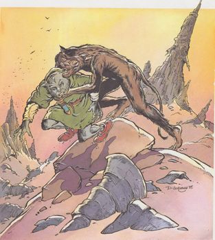remarques: | la suite des "huit jours du diable", 6 courts récits de fantastique et d'heroïc-fantasy se basant parfois sur la religion où Convard est toutefois plus optimiste que dans sa dernière série "les chats" 1/ l'homme, la femme et la bête, l'histoire d'Adam et Eve revisitée 2/ rencontre, l'homme de Cro-Magnon 3/ la vengeance du loup, une histoire moyenâgeuse 4/ le voûteux, la bête du Gevaudan 5/ dialogue sous la lune blanche 6/ le tombeau >> un scénario pas très recherché mais un très bon graphisme de Convard |