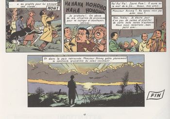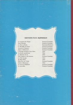 remarques: | exemplaire numéroté 875 et dédicacé par Craenhals, 61 pages, 4ème plat en peau d'ours, dernier titre: le microfilm cette fois Teddy est mêlé à une affaire d'espionnage, un agent des services secrets britanniques, traqué par ses ennemis, se réfugie au cirque Tockburger et réussit avant de mourir de dissimuler un petit microfilm dans les oreilles de Pom s'en suit une chasse au microfilm avec les espions Trenka, Cyrano et le "Chef" du réseau Uranus contre Teddy, dans laquelle le commissaire Maurice et l'agent spécial japonais Ling Hsiung viendront à la rescousse, mais c'est surtout Tarass Boulba qui tire les ficelles >> p. 41 Tarass Boulba, le double-mètre >> p. 48 la Delahaye du chef qui a littéralement fauché la haie d'une propriété et ce sera Pom qui aura eu le mot de la fin >> un épisode inédit de Pom et Teddy paru directement après les aventures de Pom et Teddy dans le journal Tintin et jamais édité en album Lombard, un des meilleurs albums de la série, avec une action soutenue et un très bon graphisme annexes - couvertures 1er et 4ème plat - extrait de la dernière page - couverture de l'album EO broché publié par Deligne 1977 en N&B, titré les nouvelles aventures de Pom et Teddy |