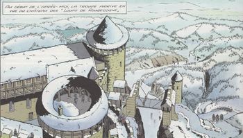 remarques: | chevalier Ardent est confronté au sénéchal grand maître Golo à la cour du roi Arthus, mais il en viendra à bout, puis il lui faudra pacifier le domaine de Rougecogne en Ardennes qui lui a été confié par le roi Arthus en gage de chevalerie >> p. 18/19 le combat spectaculaire contre Golo Ardent réussira à soumettre les trois loups de Rougecogne: Odon, Abdon et Gordon qui deviendront ses plus fidèles vassaux >> un des meilleurs albums de la série tant pour le scénario que pour le graphisme annexes - couverture de l'album - le château de Rougecogne |