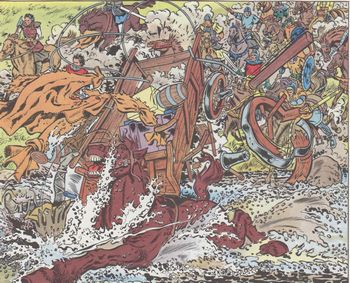 remarques: | Ardent est chargé de transporter un trésor depuis Rougecogne en Terre Sainte et en route pour Constantinople, il est confronté à nouveau au Prince Noir avec son fidèle serviteur: >> p. 13 le nain Huon de Ferre toutefois Ardent rencontre un allié de taille, le brigand Guirre au long nez qui devient son partenaire et qui le sauvera de l'emprise du Prince Noir, apparition aussi du moine-soldat Ephoros >> p. 27 l'alliance avec les petchenèques = peuple nomade d'origine turque qui apparait au VIIIème siècle à la frontière sud-est de l'empire khazar, plus tard ils s'installent au nord de la mer Caspienne; vers 650, les khazars fondent un royaume indépendant au nord du Caucase aux abords de la Volga >> rien de très magique pour le scénario, mais un graphisme toujours respectable |
