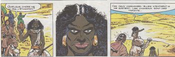 remarques: | Ardent en route pour Jérusalem avec le trésor du mage Epheros est toujours encore harcelé par les sbires du Prince Noir, mais il trouve un allié inattendu avec le brigand Nasr-el-Djinn >> p. 4 la cache dans les troncs d'arbre (découverte après coup par le Prince Noir) >> p. 6 les origines de l'Islam et l'histoire de Mahomet comme racontée par le moine Ephoros >> p. 8 apparition du brigand Nasr-el-Djinn >> p. 11 pris dans le simoun = le vent du désert avec les mirages de Aïcha, la dame des sables >> p. 17 la rose des sables >> p. 19 l'alliance d'Ardent avec les Ethiopiens, >> p. 21 la tête d'un Ethiopien >> p. 41 où Nasr-el-Djinn se révèle être la jolie princesse Aïcha >> p. 43 le feu Saint-Elme qui fait hérisser les cheveux n.b. le feu de Saint-Elme est un phénomène physique, se produisant dans certaines conditions météorologiques et qui se manifeste par des lueurs lumineuses et il semblerait que le Prince Noir est cette fois bien mort lors des derniers combats > le scenario est assez bien étudié (a reçu le prix Saint-Michel du scénario) et le graphisme toujours très respectable |