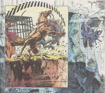 remarques: | lors d'une fête à Rougecogne, Ardent et Gwendoline sont enlevés par la secte de la confrérie de Baal à la solde de l'ogre de Worm, >>> à voir: Ardent et Gwendoline enfermés dans une cage d'acier tous deux s'en sortiront, l'ogre de Worm sera neutralisé, mais le roi Arthus croyant que Ardent a enlevé Gwendoline lui retire son fief de Rougecogne, Ardent jure de se venger et renie son serment d'allégeance envers le roi Arthus >> une aventure très moyenne de Chevalier Ardent |