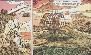 remarques: | reconstruction du château de Rougecogne, détruit en son temps par le roi Arthus, l'avance des travaux sous la direction d'Ardent et d'un maître architecte qui s'intéresse beaucoup à un passage dans les souterrains du château, Ardent découvrira le pot-aux-roses et fera une proposition originale au roi Arthus >> p. 5-8 les travaux pour la reconstruction >> p. 19 le nid volant des amoureux >> p. 45 le secret de maître Foulque: un passage secret d'évacuation du château par les souterrains >> p. 47 le nouveau château de Rougecogne dans toute sa splendeur >> un scénario original, mais malgré tout sans grande surprise, le graphisme restant toutefois respectable |