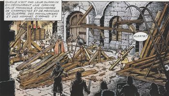 remarques: | le roi Arthus fête ses 30 ans de règne, mais dans ses rêves, les murs saignent et Arthus se lamente sur la tombe de son épouse défunte Marmande en fait, Arthus a, en son temps, ravi Marmande à son fiançé, le jeune noble comte Jocelyn, qui maintenant veut se venger sur le roi Arthus et ce sera Gwendoline qui interviendra auprès de Jocelyn pour ramener calme et réconciliation à la cour du roi Arthus >> p. 10 les murs qui saignent et qui annoncent la déchéance du roi Arthus (mais aussi la fin de la série) >> p. 24 les machines de siège assemblées >> p. 28 l'histoire de la reine Marande et du comte Jocelyn, son chevalier servant éconduit par le roi Arthus >> dernier album de la série sorti 6 ans après l'avant-dernier album, un album peu convaincant malgré qu'il soit imprimé sur un papier glacé et qu'une carte des voyages de chevalier Ardent soit annexée à l'album les quatre derniers albums ne sont guère de grand intérêt, la série finissant même quelque peu lamentablement, série qui aura quand même marqué la BD des années 1970, une couverture d'album toutefois assez bien réussie Information une série intégrale de sept volumes a été publiée par Casterman de 2001 à 2007 et une de six volumes de 2013 à 2016 |