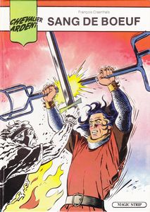 remarques: | un album intermédiaire paru entre "le passage" et "le champion du roi" mentionnant quelques épisodes inédits (5) non parus en album, mais dans le Journal Tintin: 1) le spectre de la motte = une motte hantée par un chevalier blanc 2) le passeur = Ardent est confronté avec la mort 3) sang-de-boeuf = lutte entre deux seigneurs rivaux 4) le pari = magie et prestidigitation pour le chevalier Ardent 5) la dame aux yeux pers (verts) = le monde enchanté des fées >> ces épisodes ne sont pas particulièrement intéressants, sauf peut'être pour le graphisme Information cet album fait partie d'une série de sept albums publiés par différentes maisons d'édition dont un seul "sang de boeuf" est collectionné ici: a) par Horus en N&B (1979): la tour sarrasine, la salamandre, le chien des Arboë et les loups-garous b) par Magic Strip couleur (1981): sang-de-boeuf c) par Jonas N&B (1981): Gwen... d) par Bédélire N&B (1986): la renarde surtout intéressant de par les couvertures d'albums |