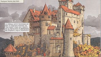remarques: | lutte entre deux familles rivales dans le St-Empire germanique, château des Hohenzollern, affaire de vengeance et de chantage lors du carnaval allemand où des nobles massacrent des bourgeois >> très bon graphisme mais scenario un peu moins recherché annexes - couverture de l'album - le château des Hohenzollern |