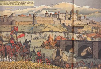 remarques: | France durant la guerre de Cent Ans, Vasco essaie de rejoindre son père qui est devenu cathare et accusé d'hérésie, Vasco va s'efforçer de délivrer son père des mains de frère Eudes, persécuteur de l'Inquisition, Vasco sera aidé du chevalier Sicart qui a pris parti pour les cathares >> un album sur le catharisme plutôt intéressant annexes - couverture de l'album - vue sur Carcassonne |