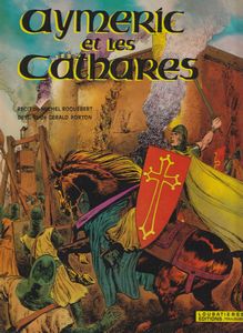 remarques: | préface: historique du Catharisme avec les croyants et les parfaits qui croyaient en Dieu, mais pas en l'autorité de l'Eglise 1198 début de la croisade contre les Albigeois (= Cathares) par le pape Innocent III, croisade dirigée par Simon de Montfort contre les comtes de Toulouse 1244 siège de Montségur, dernier refuge des Cathares qui seront pratiquement tous exterminés l'album conte l'histoire des Cathares en la personne du jeune cathare Aymeric qui se bat du côté des armées toulousaines >> une bonne reconstitution historique avec un bon graphisme de Forton |