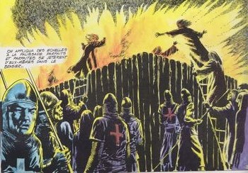 remarques: | la suite des aventures d'Aymeric, le cathare qui prend part à la défense de la forteresse de Montségur, dernier refuge des Cathares, forteresse située à 1200 m d'altitude et qui ne se rendra que par la famine après 10 mois de siège, tous les défenseurs périrent dans les bûchers description de la forteresse de Montségur >> à nouveau un bon album tant pour le graphisme que pour le scenario annexes - couverture et 4ème plat de l'album - une vignette de Forton |