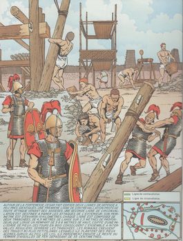 remarques: | la carte de la Gaule, la conquête de la Gaule par César >> voir aussi la série guerre des Gaules 1ère bataille: contre les Vénètes et leur flotte puissante 2ème bataille: contre Vercingétorix, Avaricum, Gergovia et Alesia - la tactique de Vercingetorix à Alesia: attirer les légions de César jusqu'à l'arrivée de l'armée de secours gauloise (250'000 hommes et 10'000 cavaliers) mais ses tentatives échouèrent de par a) le commandement non unifié des chefs gaulois, leur attaque fut mal planifiée et ils n'engagèrent pas toutes leurs réserves tandis que b) César avait établi de puissantes fortifications (contrevallation et circonvellation) et il engagea lui toutes ses réserves avec discipline et bonne tactique, c'est vrai qu'il était gâté par la déesse Fortuna! >> scénario et graphisme sans grande prétention mais en partie intéressant |