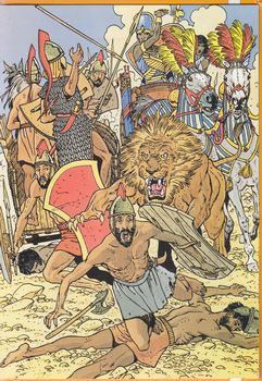 remarques: | petit album de 30 pages pour l'enseignement scolaire description de l'Egypte ancienne, le Nil, dieu de l'Egypte, Haute Egypte = capitale Memphis, Basse-Egypte = capitale Thèbes, les insignes des pharaons (pschent, ureus, sceptre, fouet), les pharaons égyptiens dont Kheops, le constructeur de la grande pyramide, les Hyksos avec l'introduction du cheval et du char de combat, la guerre de Ramsès II contre les Hittites, les dieux égyptiens, les hiéroglyphes, le trésor de Toutankhamon >>> petit aperçu de l'Egypte antique surtout très intéressant de par le graphisme étudié de André Juillard |
