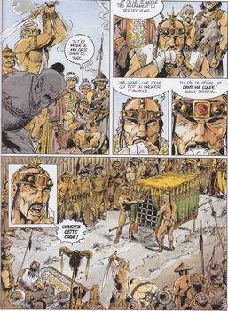 remarques: | début d'une fresque historique antique bien conçue par Mitton et dessinée par Bonnet en l'an 450 AC Attila et sa horde se lance à la conquête de l'empire romain gouvernée à l'ouest (Rome) par Valentinianus et à l'est (Constantinople) par Marcien, mais Attila se heurtera à l'habile stratège romain, le général Aetius alors que Attila reçoit de l'empereur de Constantinople Lupa, la louve et son gardien Guddur qui vont influencer les plans d'Attila annexe: épisode d'Attila dans histoire de France en BD et extraits d'Attila par Corneille Information septembre de l'an 449 après Jesus Christ, Attila, le grand Khan, installe son immense campement sur l'estuaire du Danube, parmi les nombreux présents qui lui sont offerts par l'Empereur romain, se trouvent La Lupa, mi-louve, mi-romaine qui dispose d'un sens stratégique génial et d'une connaissance aîgue des défenses romaines, de plus, elle voue une haine féroce et incompréhensible envers les Romains, surtout envers leur empereur maudit, Valentinius et envers leur courageux général Aetius, dernier rempart de l'Empire face aux barbares avec l'aide de la Lupa, Attila va alors lancer ses hordes sur l'Empire romain d'Occident et entamer, face à Aetius, une gigantesque partie d'échec à l'échelle de l'Empire tout entier Jean-Yves Mitton, soutenu par le dessin plein de séduction de Franck Bonnet, raconte avec truculence cette saga de fou, de sang et d'amour dans une époque troublée où le glaive du barbare a remplacé la loi romaine |