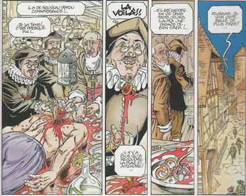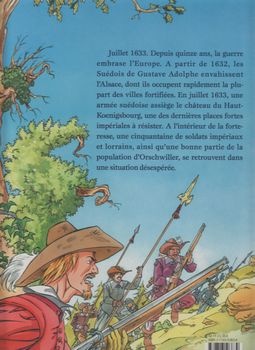 remarques: | en 1633, siège du château du Haut-Koenigsburg, par les Suédois durant la guerre de 30 ans, le château tombera par trahison après 50 jours de siège, il sera en partie détruit compte-rendu de la résistance du château avec en prime une enquête criminelle parmi les défenseurs du château où un traître s'est introduit, un scénario solide et un graphisme respectable Information - il avait été construit en 1147 à une altitude de 757 mètres propriété des Hohenstaufen - au XVIème siècle il est confié aux Habsburg - 1633 prise du château par les suédois lors de la guerre de Trente Ans - 1899 offert à l'empereur d'Allemagne Guillaume II, de la famille des Hohenzollern le château est entièrement rénové - le Haut-Koenigsburg est le troisième monument historique en province, après le Mont-Saint-Michel et le château de Chambord |
