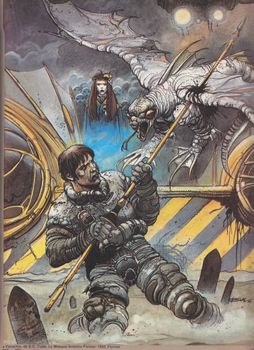 remarques: | un album résumant quelque peu les oeuvres et les dessins de Bilal à nouveau de courts récits ironiques de science-fiction avec en complément de nombreuses couvertures d'albums, d'illustrations et de gouaches par Bilal (notamment les couvertures des oeuvres de Jules Verne et de science-fiction dans la collection Folio Junior 1977-1980) avec le thème récurrent du "mur de Berlin", 2 récits intéressants: "eternity road" et "omnibus pour Vega" >> superbe album surtout de par les illustrations avec le Bilal touch = particularité de la couleur dans l'oeuvre de Bilal = magma surréel de couleurs et de formes annexes - couverture de l'album - affiche du film "mon oncle d'Amérique" (1980) avec le livre "le roi de l'or" des éditions Cinématique Bonne Presse - couverture du livre "Veruchia" by Tubb aux éditions Le Masque (1980) |