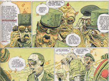 remarques: | dans la série histoires fantastiques, légendes d'aujourd'hui prologue c'est ainsi qu'est née la légende, des évènements irrationnels et c'est ainsi que fut racontée la croisière des oubliés - des expériences militaires nucléaires sur la pesanteur provoque l'élévation d'une petit village dans le sud de la France à proximité de la zone d'expérimentation, un groupe anti-nucléaire en profite pour dénoncer les agissements du gouvernement >>> page 34 l'église qui s'élève avec le village les militaires subissent des mutations cutanées alors que le gouvernemt s'efforce d'étouffer l'affaire >> un des premiers albums de Bilal, un scénario intéressant de Christin mais surtout un graphisme nouveau d'un genre particulier avec le jeu des couleurs, satire politico-social fantastique |