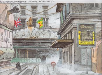 remarques: | la suite de Nikopol avec la nouvelle liaison Nikopol, Horus, Bioskop et Gogol, l'action se déroule à Paris, Londres et Berlin (Mauerpalast) la journaliste Jill Bioskop (aux cheveux bleus) réussit à expédier en 2023 des récits d'actualité dans le passé en 1993 au journal Libération à l'aide de son scriptwalker, mais elle et son amant l'extra-terrestre Alpheratzien seront piégés par des agents policiers, toutefois Nikopol et Bioskop réussiront à s'enfuir en Egypte grâce à l'intervention d'Horus >>> p. 31 l'hôtel MauerPalast à Berlin >>> p. 53 référence à Bruno Ganz sur l'affiche >> un graphisme à nouveau bien exécuté mais un scenario plutôt complexe et compliqué, cet album comprend en annexe un résumé de 4 pages du journal Libération de 1993 n.b. si le premier tome était sublime, la suite des aventures de Nikopol ne sera pas une réussite annexes - couverture de l'album EO - the Savoy hotel London - la fille en bleu |
