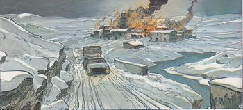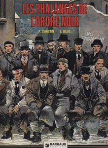 remarques: | un des meilleurs albums socio-politiques avec "partie de chasse", conçus par le tandem Bilal-Christin épopée de terrorisme; 40 ans après, un groupe d'anciens camarades socialistes (brigade internationale) ayant participé à la guerre civile espagnole reprennent du service pour venger une action terroriste d'anciens phalangistes fascistes (les phalanges de l'ordre noir) >> p. 15 la bande des "démocrates", une belle collection d'asthmatiques, de cacochymes (santé déficiente), de rhumatisants perclus et de vieilles viandes bouffées par le cholestérol >> p. 31 le groupe des neuf anciens en marche >> p. 39 la bondieuserie lors de leur itinéraire, de nombreux cadavres restent sur le chemin depuis l'Espagne, puis Rome, Genève avec visite aux autonomistes jurassiens, Heidelberg, Amsterdam, Paris et retour à Madrid où le règlement final aura lieu >> p. 57 la RTS (radio television suisse) et le passage à la douane bâloise >> p. 60 le Viking Jugend, un petit groupe neo-nazi le bilan sera toutefois assez lourd tant de part et d'autre, seuls Pritchard le journaliste et Maria l'écrivain échapperont à la mort >> un excellent graphisme mais surtout un scenario de 80 pages avec un texte sublime, intense et émouvant, la couverture de l'album montre le groupe de camarades dans leur jeunesse Information la quatrième collaboration entre Christin et Bilal, après la croisière des oubliés (1975), le vaisseau de pierre (1976), et la ville qui n'existait pas (1977), donne cette bande dessinée politique dont les racines sont la guerre civile espagnole les ennemis d’hier reprennent la lutte quelques dizaines d’années plus tard, mais les idéologies n’ont plus la même vérité, aux nostalgiques de l’ordre fasciste, des "démocrates" vont s’opposer une fois de plus par la violence, adossée à l’Histoire, cette poursuite à mort est l’occasion de poser des questions sur certains systèmes politiques et leur persistance ainsi que sur l'usage de la violence à des fins politiques, la fin apocalyptique est une réponse en forme d’impasse n.b. voir aussi partie de chasse qui traite de la dégénérescence du système soviétique |