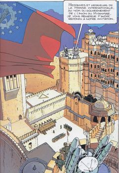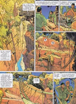 remarques: | pour sauver Simon, Largo va demander l'aide de la société secrète de la Triade dont il a sauvé la vie de l'un de ses membres dans le passé, la Triade va aider Largo à sauver Simon + 5 autres vies, mais demandera à Largo un service similaire dans le futur les dernières 16 heures de vie pour Simon sont déjà bien engagées lorsque Largo arrive à Rangoon pour mettre son plan à exécution rencontre avec le truand chinois qui lui arrange une entrevue avec un gardien du TAO, membre de la Triade, l'histoire de Tan Ming T'Sien, un membre de la Triade dont Largo avait jadis sauvé la vie >> p. 10 description de la société Triade la Triade accepte d'aider Largo, mais comme il y a plus d'une vie à sauver, celle-ci demandera dans le futur un service similaire à Largo qui accepte, il sera donc redevable d'un même service sans condition avec l'aide de la Triade, le général Mah Win en route pour Makiling avec son hélicoptère sera kidnappé et remplacé par un sosie, les bombes fumigènes, l'effet surprise et les flèchettes hypodermiques permettront de neutraliser la garnison pendant un certain temps et de délivrer les condamnés par la voie des airs emportant avec eux le journaliste French qui assistait comme invité à l'exécution et qui sauve la vie de Largo menacé par le gardien-chef de Makiling puis Largo et ses amis accompagné de la belle Malunaï se dirigent vers la frontière thaïlandaise, durant le trajet, Largo découvre que French est en réalité à la solde de la CIA afin de localiser le quartier-général des rebelles et de les détruire par l'armée birmane; à la faveur de cette action d'éclat, le général Mah Win a l'intention de prendre le pouvoir au Myanmar avec l'aide d'Anderson, le représentant de la CIA, mais Largo informe le gouvernement birman et le coup d'état échoue entretemps, Largo épargne la vie de French en lui ordonnant de quitter de suite le pays mais Kadjang, le lieutenant du Tigre = chef des rebelles, n'a pas de remord et supprime d'office French >> p. 30 la CIA = les maîtres du monde après bien des péripéties, dont le franchissement de la frontière par un pont dangereux, utilisé par les contrebandiers, tous les compagnons de Largo atteindront sains et saufs Bangkok, Malunaï malgré son amour pour Largo préférera toutefois rester dans son pays et continuer la lutte >> p. 40 le dossier Winch plus épais que toutes les oeuvres de Victor Hugo >> p. 44 le fameux pont du diable utilisé par les contrebandiers à la frontière thaï-birmane >> un scénario assez bien imaginé mais sans excès et avec un graphisme toujours respectable annexes - couverture de l'album - la forteresse de Makiling, vue intérieure - la frontière de contrebande entre la Thaïlande et le Myanmar |