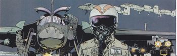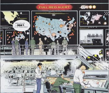 remarques: | les obsèques du vieux Henry Sheridan où l'on retrouve Carrington, Donnelly (ministre de la défense), Heideger (du contre-espionnage) et Calvin Wax, conseiller du président Galbrain + le général Standwell, dit le "boucher" + le marquis Armand de Préseau, obsèques durant lesquelles Wally Sheridan est victime d'un attentat, le tueur est supprimé et Wally n'est que légèrement blessé alors que le trio XIII dérive toujours dans les marais de San Miguel >> p. 7 constatation par Jones: XIII sait parler l'espagnol, ce qui n'était pas mentionné dans son dossier le coup d'état se prépare et se déroulera durant "rouge totale" = les grandes manoeuvres de l'armée américaine et déjà Donnelly, Heideger et Carrington sont arrêtés par les putchistes dans la jungle centre-américaine, le trio XIII doit encore faire façe à de nombreux dangers mais >> p. 14 Betty la démoniaque remet ça >> p. 17 toujours les bonnes choses à la bonne place et Jones est déjà bien entichée de XIII Carrington est mis au courant du plan des conjurés, mais ne se laisse pas faire >> p. 19 Carrington, emprisonné, dispose toujours encore de sa boite à cigares >> p. 21 l'altercation entre Carrington et Standwell qui lui devient borgne rentré aux USA avec l'aide du marquis André Préseau qui met son jet à leur disposition grâce à Betty qui a tapé dans l'oeil du marquis >> p. 28 la Ford Camaro Z28 louée par le trio le trio rencontre le colonel Amos pour établir un plan de campagne et Amos avec XIII réussit à convaincre le sénateur Wally Sheridan, candidat aux présidentielles, de contacter le président Galbrain en se rendant au SSHl (supreme strategic headquarter one) pour convaincre Galbrain de stopper l'opération "full red alert" qui déclancherait une 3ème guerre mondiale et de l'avertir du danger qui menace le pays >> p. 31 l'arrivée au SSH1 mais l'opération "rescue" du sénateur Sheridan échoue, tout le monde est arrêté, même le président, par les putchistes, heureusement grâce à l'intervention énergique de XIII et du lieutenant Jones, les plans des conjuristes échoueront ils seront tous arrêtés, Calvin Wax le numéro II se donne la mort et il était le seul à connaître le numéro I qui reste donc en liberté, la série a toujours encore du pain sur la planche >> à noter: l'intrusion fortuite de Jones dans la base SSH1 reste peu crédible épilogue: Heideger est mort lors de son arrestation, Kim Rowland a disparu, Galbrain retire sa candidature, Wally Sheridan devient le nouveau président, Amos se consacre maintenant à retrouver le tireur non identifié connu sous le sobriquet de la Mangouste, Betty Barnowsky part retrouver Armand, son amoureux Felicity Brown a aussi disparu, Jones reprend du service après avoir été nommée major et XIII part sur les traces de Jason Fly dans le prochain album qui s'intitule "le dossier Jason Fly", fin de la première partie de la saga de XIII >> un album d'action et avec suspense, un développement intéressant et un graphisme toujours de qualité n.b. ce récit donne l'occasion de produire un nouveau XIII mystery sur les origines de Little Jones ainsi que celles de Calvin Wax et à nouveau référence à l'affaire Kennedy avec un président Galbrain qui ressemble beaucoup à Gérald Ford annexes - couverture de l'album - la base SSH1 dans les Rocheuses - la force aérienne sur le pied de guerre |