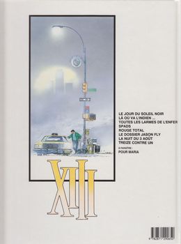 remarques: | nouveaux personnages principaux: - Frank Giardino, grand patron du contre-espionnage, - Ned Bancroft, assistant de XIII - Amalia Carrington, soeur du général XIII alias Jason Fly, alias MacLane a récupéré son identité véritable, mais pas encore sa mémoire antérorétrograde (voir album 6), le président Wally Sheridan (qui a gagné les élections contre Galbraith) lui propose alors de devenir l'homme du président (= l'homme à tout faire sous l'autorité directe du président) pour identifier le no 1 de la conjuration soleil noir XIII reçoit un passeport Alpha (un passeport passe-partout) et un membre du service secret, Ned Bancroft, comme assistant, le tout pour retrouver le no 1 alors que la Mangouste s'enfuit de façon spectaculaire du pénitencier de Bluebanks >> p. 8/9 l'évasion trop spectaculaire de la Mangouste >> p. 13 Frank Giordino, le successeur de Heideger >> p. 14 un homme du président gonflé à bloc entretemps XIII décide de rechercher Kim Rowland et envoie Jones enquêter chez la soeur de Carrington, Amalia Carrington, un personnage particulier qui n'a pas froid aux yeux et qui a bon appétit >> p. 21 l'assiette bien remplie d'Amalia >> l'affaire Kim Rowland qui a été en relation avec Wally Sheridan, en fait elle lui a même fait un enfant (Colin) et Kim aurait travaillé pour Sheridan (en cour-circuitant Heideger), elle aurait même trahi XIII (le faux Steve Rowland), sur ordre de Sheridan, en l'attirant sur le bateau de Sheridan (le Lady Bee) où la Mangouste devait éliminer le faux Rowland (un témoin gênant) et on connait la suite Amos est grièvement blessé par la Mangouste et temporairement mis hors de course, mais il parie sur XII à 13 contre 1 et on le retrouvera dans l'album no 12 "le jugement" >> p. 19 le lieu de rencontre de XIII avec Amos les premiers soupçons de XIII se portent sur le président Wally Sheridan qui aurait engagé XIII pour enquêter sur son propre crime afin de s'assurer de n'avoir laissé à l'écart aucune piste menant au no 1, quitte à supprimer l'enquêteur si nécessaire ce soupçon est confirmé lors de la visite de XIII à l'hôpital où Wally Sheridan avait été soigné après l'attentat qu'il avait subi (XIII découvre que par la même occasion, Wally aurait fait supprimer son tatouage avec le no 1) >> p. 26 XIII aime bien taper dans l'oeil (rencontre avec la fameuse Irina la diabolique, la nouvelle assistante de la Mangouste qui aura son propre album parmi les premiers de XIII Mystery, le no 2) >> p. 27 le gag classique, était-ce bien nécessaire? XIII découvre une nouvelle piste avec le yacht du président "le Lady Bee" où XIII est sensé avoir débuté ses aventures dans le tome no 1, il y trouvera Jones et Kim Rowland, prisonnières de la Mangouste, sur une île de la côte est près de Northshore (une île appartenant à madame Fitzsimmons = nom de jeune fille de l'épouse du président Sheridan), XIII réussira à s'en sortir bien sûr avec la jolie Jones, mais Kim Rowland ne pourra pas être sauvée (elle est sensée être morte mais on la retrouvera plus tard) dernier entretien avec le président Sheridan que XIII découvre finalement être le no 1 et qui aura été une ordure jusqu'au bout, mais XIII ne peut rien prouver et le président est intouchable, XIII sortira toutefois en beauté de la Maison Blanche tandis que la Mangouste court toujours >> un très bon album de la série: action, enquête, originalité et avec quelque humour dont >> p. 17/18 Amilia Carrington on nous livre aussi dans cet album des détails sur l'histoire de Kim Rowland, l'album est un épisode pour soi dans la série mais XIII reste toujours un mort amnésique en sursis n.b. cet épisode servira à produire l'album no 3 XIII mystery sur les origines du colonel Amos (un album tout à fait intéressant) annexes - 1er et 4ème plat de l'album - la Maison Blanche - les locaux du colonel Amos |