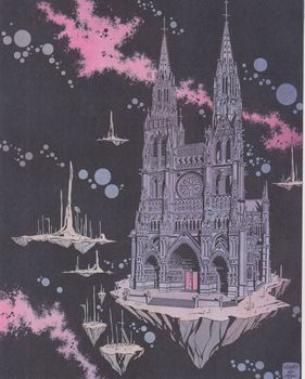 remarques: | prélude quelque peu au premier volume de Ergün l'errant, ce récit n'a jamais été prépublié en 1974, plusieurs planches de Comes ayant été perdues, reprises en 1979, ces planches ont été pour la première fois éditées en album en 1981 cette histoire évoque la mort et sa mythologie, un des thèmes majeurs qui sous-entendent l'oeuvre de Comès Ergün, voyageur de l'espace, rencontre la mort et son serviteur l'ankou, lors d'un accident avec son vaisseau spatial, Ergün se fait voler la carapace matérielle de son corps et son esprit part à sa recherche, dans sa quête, il rencontrera Satan (Samael) et parcourera les enfers dont page 29 l'oiseau de l'ombre, finalement Ergün récupérera son corps grâce au maître des ténèbres = un aviateur allemand de la guerre 14-18, on y découvre même le caporal Hitler en page 36 >>> un album surtout intéressant de par le graphisme et ses couleurs ainsi qu'une splendide couverture d'album et la quête d'Ergün à travers les mondes de la mort n'aura été finalement qu'un mauvais rêve |