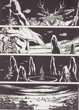 remarques: | le 2ème chef d'oeuvre de Comès un jeune couple de citadins avec leur jeune fils Pierre, un autiste, s'installe dans un petit village des Ardennes ils y seront confrontés par un criminel (le fermier Jules Renard et son fils nabot Bébert), par les adeptes de la vieille religion de la déesse-mère Demeter pratiquée par la magicienne "la belette" et son père, tous deux adorant la salamandre = l'esprit du feu et par la religion conservative représentée par le corbeau-curé Schonbroodt qui finalement recourra au meurtre pour faire admettre sa religion, Anne la femme enceinte sera sauvée par la "belette" qui se métamorphose en chouette mais qui peu après sera abattue par le fermier Renard qui la prend pour une vraie chouette >>> page 47/48 l'initiation de Pierre à l'esprit du feu = la salamandre qui lui donnera le don de guérir les brûlures >>> à nouveau un superbe album de 146 pages par Comès, intéressant tant pour le graphisme que pour le scénario qui nous parle à nouveau de magie noire, de nécromancie, de medium, de fétichisme le tout teinté fortement d'anti-cléricisme et doublé d'une affaire criminelle, décidément Comès est un conteur exceptionnel |