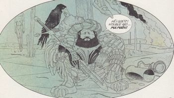 remarques: | préface par Baronian sur le fantastique chez Comès front de la Meuse en 1915, le soldat allemand Goetz von Berlichingen se retrouve en pleine bataille dans une forêt de paix où il rencontre des personnages imaginaires tel que Chrystal, la petite fille, Aaron le garçon, Douce la jeune femme et les deux corbeaux qui jouent aux échecs pour décider du sort de la bataille Goetz avec l'aviateur français Pierret subiront tous deux une mort cruelle, car c'est leur destin mais Goetz sera sauvé in extremis par la douce Douce >>> un des premiers albums de Comès, tout en fantastique, mais soulignant l'influence du destin et de la mort sur le sort des hommes tout en critiquant l'absurdité de la guerre >> bon graphisme et scénario qui restera dans le style de Comès n.b. petite description de Goetz von Berlichingen, chevalier allemand né en 1480 et mort en 1562 qui s'était fait confectionner une prothèse de bras très en avance pour son temps |