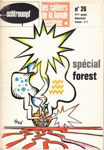 remarques: | Jean-Claude Forest (1930-1998) apparait comme dessinateur BD en 1958, participe à la révolution de la BD adulte en 1960 (avec Barbarella, Epoxy, Pravda, etc), fondateur de Giff-Wiff et du célèbre CELEG = centre d'étude de la littérature d'expression graphique Forest est le spécialiste du fantastique humoristique, décrivant des univers et des personnages qui apparaissent dans les récits de Forest sans s'y attendre et sans but réel, au gré du destin mais qui chacun a sa personnalité propre (exemple de la femme-à-jambe-démontable), mélange aussi de science fiction, humour et érotisme, cherche aussi à imposer son point de vue aux lecteurs ce qui n'est pas toujours facile - analyse de Barbarella - analyse de "mystérieuse matin, midi et soir" bibliographie - 1949 journal OK - 1951 journal Caméra (divers nouvelles) - 1951 journal Vaillant - 1971 Pif Gadget (les Charlot, mystérieuse matin, midi et soir) - 1953 Fillette - 1962 France Soir (Barbarella) - 1963-1971 France Soir (Hypocrite) - 1964 Chouchou (bébé-cyanure) - 1972 Pilote (Hypocrite) travaille aussi pour Suzette, Lisette, Mireille (1956-1960) et pour Evergreen (1965) >> un cahier intéressen, mais aussi quelque peu abstrait |