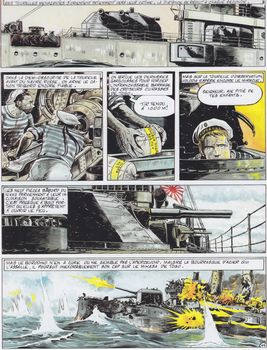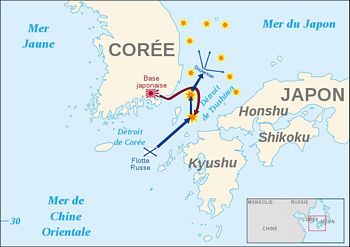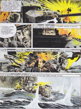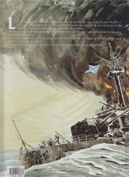 remarques: | superbe album avec un graphisme exceptionnel sur l'épopée de la flotte russe du tsar dans la guerre russo-japonaise durant la bataille de Tsushima (mai 1905) = bataille navale peu connue, mais une défaite complète pour la flotte du tsar le 14.10.1904 la deuxième escadre du tsar Nicolas II composée de 35 navires quitte Libau pour une intervention navale à 22'000 milles = près de 37'000 km via le Cap Afrique du Sud pour dégager Port-Arthur, base russe en Chine assiégée par l'armée japonaise >> p. 12 l'enfer du charbon = le transbordage du charbon depuis les vaillants navires de la Deutsche Amerika Linie n.b. le poussier est un ensemble de fines particules de poussières de carbone hautement inflammables présent durant l'exploitation des mines de charbon après bien des déboires, arrivée de l'escadre le 5.1. 1905 à Noss Be, pointe nord de Madagascar, l'escadre y restera deux mois en attendant une deuxième flotte de 30 bâtiments alors que Port-Arthur est déjà tombée le 2.1.1905, nouvelle destination: Vladivostok le 28.5.1905 la flotte russe de l'amiral Rojestvensky rencontre dans le détroit de Corée au large de l'île Tsushima la flotte japonaise de l'amiral Togo, ce sera le carnage pour la flotte russe, des 65 navires engagés, trois seulement parviendront à rejoindre Vladivostok, les japonais n'auront que trois torpilleurs coulés la flotte japonaise durant la bataille utilisera surtout la tactique de barrer le T la Russie, amputée de sa marine principale allait prochainement entrer dans le cahot de la révolution et pourtant, longtemps après, l'union soviétique honorait encore le sacrifice et l'héroïsme de ses marins >>> scénario historiquement vécu et graphisme sublime n.b. >>> biographie Guy Mouminoux alias Dimitri voir CBD no 63 (Adèle Blanc-Sec) ainsi que dossier Dimitri 462D2+E Information barrer le T est, lors d'un engagement naval, la manœuvre qui consiste à se présenter perpendiculairement à la ligne de bateaux adverses (représentant ainsi schématiquement un T où la ligne de navire attaquée est le corps de la lettre et où l'attaquant représente la barre horizontale) le résultat de la manœuvre est que pour l'escadre attaquée: le feu de l'escadre qui a barré le T se concentre sur le navire de tête, puis sur le second quand le premier est coulé ou désemparé, le reste de l'escadre attaquée ne peut pas répliquer dans l'axe du bâtiment qui la précède et ne peut utiliser que ses tourelles avant toutes choses égales par ailleurs, celui qui a "barré le T" bénéficie d'une supériorité de feu d'au moins 2 à 1; un autre avantage pour la flotte barrant le T est lié à la qualité de la précision de l'artillerie, il est plus facile pour un canon de tirer avec précision dans une direction que de tirer à une distance précise, la flotte qui barre le T voit une cible relativement étroite, mais relativement profonde, ainsi, le tir précis en direction peut être imprécis en distance de quelques mètres, sans conséquence, au contraire, la flotte qui est dans la branche verticale du T voit une cible plus large mais moins profonde, donc plus difficile à atteindre; cette tactique eut un effet considérable, car, pendant des décennies, les commandants des escadres avaient un rêve, barrer le T à l'ennemi, et une hantise, se le laisser barrer; toutefois lors de la bataille de Trafalgar, le 21 octobre 1805, est un contre exemple: la flotte de Nelson se laisse barrer le T par la flotte franco-espagnole qui est disloquée en son centre par la flotte anglaise |