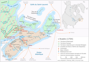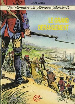 remarques: | Benjamin est sauvé du pilori par Mary qui réussit à s'enfuir avec Benjamin lors de l'attaque du fort par les français et les hurons alors que Louise et Billy, délivrés, partent pour Trois-Rivières en Acadie où se trouve la tante de Julia tandis que Mary et Benjamin tentent de rejoindre New York où Mary a de la famille, mais à New York, Benjamin se lasse vite des frasques de Mary et décide de la quitter, par vengeance celle-ci s'allie avec l'anglais Crimbel contre Benjamin en 1756, les anglais occupent l'Acadie (région nord-américaine entre Halifax et Quebec aujourdhui = nouvelle Ecosse), 8000 acadiens sont chassés de leurs demeures et doivent s'embarquer en exil en grande partie vers la Louisiane, les bateaux où ont pris place Louise, Billy, Julia et son mari s'arrêtent dans la Baie Verte où ils sont canonnés par des bateaux anglais sur lesquels se trouvent aussi Mary et Crimbel à la recherche de Benjamin, les acadiens se réfugient dans les bois où Billy et Louise retrouvent Benjamin en route pour les rejoindre >> un album toujours intéressant, toutefois l'action est un peu moins bien soutenue que dans l'album précédant tant pour le scenario que pour le graphisme annexes - couverture de l'album - la carte de l'Acadie en 1754 - couverture de l'édition Deligne (1985) |