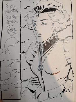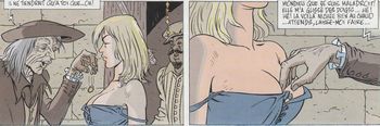 remarques: | premier tome d'une série de trois volumes Paris, 1553, Catherine de Medicis demande à Nostradamus de débarrasser Henri II de sa maîtresse Diane de Poitiers qui a eu un bébé de lui, la fillette est enlevée mais le ravisseur ne peut se résoudre à la tuer et la confie à l'hospice du St-Esprit qui le remet à un père adoptif Arcines qui l'appelle Margot l'enfant bleu. n.b. les enfants trouvés étaient appelés ainsi "enfant bleu" selon la couleur de leur tunique sous Charles IX, Margot a maintenant 19 ans, elle est devenue comme son père adoptif une adepte de Léonard de Vinci et manie l'épée comme une professionnelle son père arrêté et exécuté, Margot s'enfuit et jure de se venger sur le gouverneur qui a fait exécuter son père et qui finira embroché sur un coq d'église tandis que la 2ème Margot, Marguerite de Valois, fille de Catherine Medicis, sauve la vie de Margot la bleue >> p. 30 l'histoire de la dague et de la bague >> p. 47 la mort du prévôt embroché sur un coq d'église après avoir donné l'ordre de supprimer tous les coqs de Paris >> un premier volume de la série pas très convaincant ni par le scénario ni par le graphisme et malgré le coloriage fortement teinté de "bleu", quelque similitude avec Ariane de Troïl des "7 vies de l'épervier" annexes - couverture de l'album - deux illustrations choisies - portrait de la vraie Margot par l'auteur Information - le dessinateur Pham Minh Son est d'origine vietnammienne et auteur des ouvrages: maître Chang, le phénix et le dragon, songe, triade et la révolution enfin - François Dimberton débute sa carrière en dessinant les aventures de Pif le chien, puis, il travaille pour Tintin, Spirou, Mickey, écrit des scénarios réalistes pour l es éditions Glénat et devient au début des années 90 l’assistant de Michel Greg, à côté de son travail de scénariste, il est aussi illustrateur pour la jeunesse et dessinateur de presse |