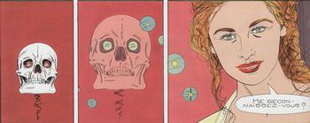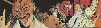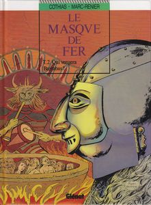 remarques: | 2ème volet de la série, juin 1996 avec à nouveau en fin d'album, la page de garde aux portraits (les portraits des personnages du cycle des 7 vies soit les 7 vies de l'épervier, masque rouge, le fou du roy, coeur brûlé, le masque de fer et Ninon secrète à 61 ans, le masque de fer se souvient: - pourchassé par la justice, Jean-Baptiste Donjon prend le nom de Des Joncs, mais son complice Loiseau est exécuté sur la roue suite à des attentats sur des nobles - peu après Des Joncs/Donjon assiste à une cérémonie de la secte de Bââl-Zébuth qui sacrifie des enfants, il ne peut malheureusement rien y faire >> p. 14/15 la messe noire avec le sacrifice d'un enfant il demande au marquis de Villedeuil un soutien financier pour son "théâtre de la lune" qui veut concurrencer celui de Molière "le théâtre du soleil" >> p. 25 le fameux comédien Tiberio Fiorelli, plus connu sous les traits du célèbre Scaramouche qui était un grand ami de Molière >> p. 28 la tirade d'Artagnan >> p. 33 la pièce imaginée par Des Joncs: autant en emporte le vent >> p. 35 dans le salon d'Anne de Lenclos surnommée Ninon Lenclos où se rendent aussi Scarron et Françoise d'Aubigné >> p. 36 rencontre avec le fabuliste La Fontaine n.b. dès les pages 34/35, le graphisme de Marc-Renier change en devenant moins raffiné, ce qui est bien dommage >> un deuxième album assez respectable, mais moins intéressant que la série le fou du roy tant pour le scénario que pour le graphisme, c'est un peu une trame quelque peu parrallèle au fou du roy, les couvertures présentent toutefois un certain attrait à noter que le titre de ce 2ème album est le nom du premier supplicié de la secte de Bââl-Zébuth |