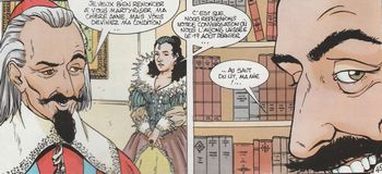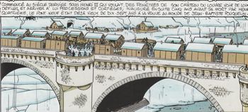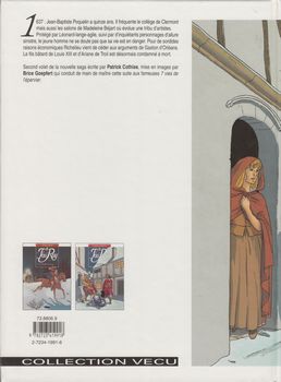 remarques: | édition originale novembre 1995 avec la page de garde aux portraits - 1637, tandis que Jean-Baptiste continue son éducation chez les Jésuites, Richelieu s'inquiète à ce que le roi n'ait toujours pas encore d'héritier mâle >> p. 5 l'organisation en décuries au collège de Clermont à Paris, la plus fameuse école de ce temps >> p. 7 on y enseigne que la France est au-dessus de toutes les nations >> p. 17 Jean-Baptiste avec son grand-père fait la connaissance des farceurs (= comédiens) du Pont-Neuf >> p. 20 Jean-Baptiste est toujours encore surveillé par ses mystérieux protecteurs - premières relations avec Madeleine Béjart, surnommée la Madelon, elle est âgée de 19 ans et cotoie les acteurs du théâtre du Marais, Jen-Baptiste vient de fêter ses 15 ans - l'ancien curé de Saint-Eustache tente d'informer Jean-Baptiste sur ses origines, mais il est rapidement éliminé - Jean Baptiste fréquente de plus en plus le monde de la Madelon, alors que Richelieu s'accorde avec Gaston d'Orléans pour éliminer Jean-Baptiste "en douceur" >>> bonne continuation de la série, mais un peu moins soutenu que le premier volume, par contre un récit plein d'intrigues nomenclature: - bouquetière = celle qui fait et vend des bouquets de fleurs dans les lieux publics - bateleur = personne qui fait des tours d'acrobatie, d'escamotage, sur les places publiques, dans les foires annexes - 1er et 2ème plat de l'album - le Pont-Neuf à Paris - illustrations - ex libris de Goepfert |