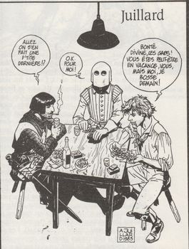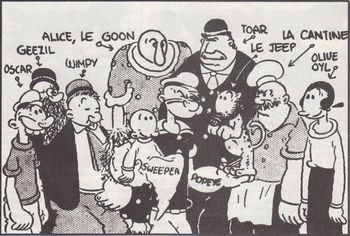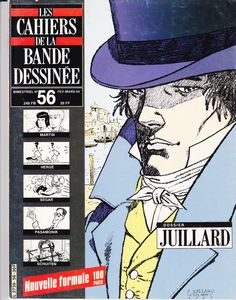 remarques: | premier numéro d'une nouvelle formule avec une centaine de page un cahier très varié 1) dossier Juillard entretiens, l'aigle (Arno) et l'épervier (7 vies), l'album Cheminot, Isabelle Fantori, bibliographie 2) 1984 l'année Jacques Martin 3) l'éternel retour de Tintin, critique des oeuvres sur l'univers d'Hergé 4) relecture de Popeye paru en 1929 dans le New York Evening Standard sous le titre "the thimble theater" par Segar, les personnages, un exemple typique de daily strip allant de la violence brutale au soap opera 5) entretiens avec Pasamonik des éditions Magic Strip, Janus et Bedescope, premier éditeur à réaliser une revue critique sur la bande dessinée 6) le rêve africain dans la BD avec Tintin au Congo, Tarzan, etc 7) dissertations sur les séries cités obscures, terre creuse, métamorphoses de Schuiten intéressant surtout de par le dossier Juillard mais aussi par les différents thèmes dont les éditions Magic Strip annexes - couverture du no 56 - la famille Popeye - caricature sur Juillard |