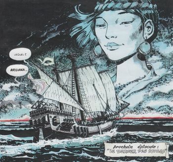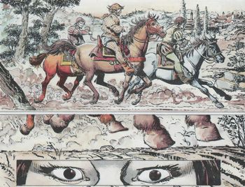 remarques: | 1527, la guerre fait rage en Italie, la peste règne à Rome avec viol, vol et massacre, les impériaux de Charles Quint ravagent la cité éternelle, dans cette orgie de feu et de sang, le jeune médecin Paraveci, disciple du médecin Paralcèse, et ses deux compagnons d'aventure: Jacobus de Roep et le basque dit le Furet, vont se trouver entraînés dans une sulfureuse chasse au trésor de 500'000 ducats d'or >> p. 26 le carosse de Dona Oriella Dolores de la Cuesta malheureusement, ce trésor a déjà été ramassé par dona Ornella aidée par la société secrète Casa di San Giorgio et nos trois amis commencent un périple vers l'Amérique du Sud à la recherche d'autres trésor; à cet effet, ils doivent aussi rencontrer Pizarre le conquistador >>> on aurait pu aussi intituler cet album "l'imbroglio italien", si le graphisme est acceptable, le scénario ne vaut pas pipette et le prochain volume annonçé "le berger des étoiles"ne paraîtra pas n.b. entre autre, pourquoi le titre "le casque et la fronde"? annexes - couverture de l'album - deux illustrations de l'album Information - Walter Fahrer fréquente l'école des Beaux-Arts de Buenos-Aires, puis débute professionnellement en 1957, il enchaîne avec plusieurs récits d'Ernie Pike scénarisés par Hector Oesterheld et publiés dans Hora Cero aux éditions Frontera - il est le dessinateur de différentes bandes dessinées dont Harry Chase, Cobalt et captain Hard - quant au scénariste François Cortegianni, il est bien connu pour ses oeuvres dont Francis Falko, Gil Jourdan, l'archer blanc, de silence et de sang, les ombres de la lagune, Pif le chien, etc |