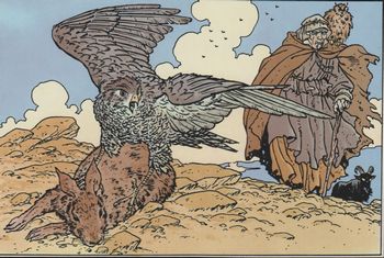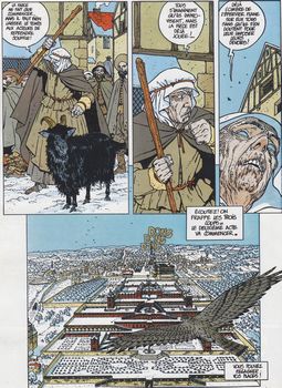 remarques: | le début d'une série historique exceptionnelle qui fera partie d'un cycle de grande envergure prépublié dans Circus, puis dans Vécu, cette série est originellement une préquelle de la série Masquerouge en 1601, sous Henri IV, la femme de Yvon de Troïl met au monde une petite fille, Ariane, dans la neige alors que Marie de Medicis, 2ème épouse de Henri IV, met au monde le futur Louis XIII en province, un mystérieux justicier déguisé sous un masque rouge lutte contre les brutalités des seigneurs des environs dont le comte Thibaud de Bruantfou, son bras droit Taillefer et ses deux fils 10 ans plus tard, le dauphin à Fontainebleau s'amuse à tirer sur les oreilles des soldats de garde dont Germain Grandpin, à Aurillac, au château des Troïl, Ariane et son frère Guillemot s'enthousiasment sur les exploits du masque rouge >> p. 39 le porteur de chaise d'affaire = gentilhomme promu au rang de WC ambulant jouant un rôle prépondérant dans la vie des châteaux >> un superbe graphisme de Juillard pour débuter cette série mémorable, de jolies couleurs et un scénario marqué de magie et d'anti-cléricité annexes - couverture originale - scènes du 1er tome - couverture réédition 1992 Information sur les personnages - l'intrigue se développe à partir de personnages réels (Henri IV, Louis XIII, Marie de Médicis, Ravaillac...) et de personnages de fiction (la famille de Troïl) - Ariane de Troïl: elle échappe à la mort quand sa mère lui donne naissance dans la campagne enneigée, très douée à l'épée, elle est fascinée par un rebelle local surnommé "l'homme au masque" et "l'épervier", adolescente, elle voit périr le reste de sa famille et part pour Paris avec Germain - Yvon de Troïl: époux de Blanche, père d’Ariane et de Guillemot, c’est un aristocrate de province désargenté, impuissant contre Thibaut de Bruantfou son voisin, Yvon est hanté par le décès de son épouse Blanche - Blanche de Troïl: fille d'un laboureur, très belle femme, elle a épousé Yvon de Troïl et a donné naissance à Guillemot et Ariane - Gabriel de Troïl: ancien soldat d'élite, bretteur hors pair, il est le frère cadet d’Yvon qui le chasse de la demeure familiale à cause d’un adultère entre Gabriel et Blanche, alors que Gabriel, en proie au chagrin, erre dans la campagne, il croise une vieille femme qui lui propose un marché étrange, à la suite de ce marché, Gabriel devient un rebelle surnommé "l'homme au masque" et "l'épervier", Ariane ignore son identité réelle - Guillemot de Troïl: fils d’Yvon et frère aîné d’Ariane, il est complice des frasques de sa sœur à son corps défendant, il ne sait pas lui dire non, il fait preuve d'aptitudes limitées à l'épée - Guillaume, intendant d'Yvon de Troil - Germain Grandpin: capitaine de la garde, chargé de la protection des enfants royaux, donc du jeune Louis XIII, il sauve la vie d'Henri IV, devient un ami proche, puis il tombe en disgrâce à la suite du régicide de Ravaillac, après avoir purgé une peine de prison et libéré à la suite d'une amnistie générale de Louis XIII, à court d'argent, il décide de retrouver son ancien ami Gabriel de Troïl en Auvergne où il rencontre Ariane, Guillemot et Yvon, il devient le confident d'Ariane et son maître d'armes, comme Gabriel et Ariane, i l est un bretteur exceptionnel - Thibaud de Bruantfou: voisin de la famille de Troïl, il manifeste un caractère violent et cruel - ses deux fils Robert et Raoul - Taillefer, homme de main de Thibaud - Henri IV, Marie de Médicis et Louis XIII - Léonard dite Langue-Agile, homme très âgé et mystérieux, tirant apparemment toutes les ficelles, revendiquant d'être le Diable, mais néanmoins emprisonné (de son plein gré) - la sorcière, femme âgée et aveugle, annonçant des éléments de l'intrigue, au service de Léonard les séries du cycle: - les Tentations de Navarre - le Chevalier, la Mort et le Diable - Masquerouge - les Sept vies de l'Épervier - le fou du Roy - Cœur brûlé - Plume aux vents (7 vies 2ème époque) - Ninon secrète - le Masque de fer - les Sept Vies (3ème époque) |
