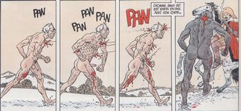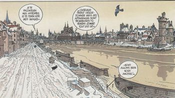 remarques: | Ariane cherche à entrer en contact avec le masque rouge alors que le roi Henri IV, son fils et le poète Malherbe sont impliqués dans une course de carosses >> p. 10 des cases en ordre décroissant entretemps, toujours à la chasse du masque rouge, le comte de Bruantfou passe sa rage sur un pauvre charbonnier qui finalement se révoltera, mais payera de sa vie les débauches de son seigneur >> p. 32/33 la marche du charbonnier nu dans la neige le masque rouge voudra le venger tandis que le roi est averti de son destin par une mystérieuse vieille femme (la magicienne du destin) >> un album exceptionnel tant pour le graphisme que pour le scenario avec une magnifique couverture d'album, le 4ème plat reprend celui du tome 1 annexes - couverture originale - scènes du 2ème tome - couverture réédition 1992 |