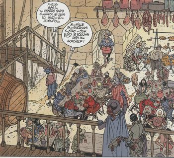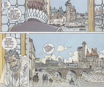 remarques: | à Paris, Henri IV échappe à un attentat grâce à Germain Grandpin qui est promu commandant des gardes du roi. >> p. 30 Henri IV n'apprécie pas du tout les grandes toilettes sauf la grande chaise (p.13) Yvon de Troïl veut régler ses comptes avec son frère Gabriel (qui aurait été l'amant de la femme Blanche de Yvon) et qui s'occupe trop de Ariane, mais Gabriel ne veut pas se battre avec son frère et prend la fuite à Paris, le destin du roi est scellé par la chute de l'arbre de mai >> toujours une bonne continuation de la série annexes - couverture originale avec 2ème plat - scènes du tome 3 dont celle de l'auberge - couverture réédition 1992 |