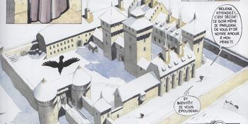 remarques: | début d'une nouvelle série quelque peu similaire aux chemins de Malefosse, c'est un peu la jeunesse du merceniare Günther Nuremberg, 1560, les amours impossibles de Günther et de Helena, dispute entre le père de Günther = Ambrosius Amerbach = armurier, inventeur d'armes dont la platine et son fils Günther qui veut devenir homme d'arme au lieu d'imprimeur le père assassiné, Lucas, frère de Günther accuse celui-ci et Günther doit s'enfuir, blessé, il sera recueilli par la belle Graziella qui l'emmène à Genève où Günther se remet sagement par la suite, Graziella lui fait rencontrer Monsieur de Bèze, disciple de Calvin qui demande à Günther de l'escorter jusqu'à La Rochelle où sont rassemblés les chefs réformés dont l'amiral de Cologny et Jeanne de Navarre brève rencontre avec le moinillon Louvel qui commet déjà des atrocités mais à La Rochelle, on projette d'assassiner Monsieur de Bèze, Günther protègera de Bèze et combattra contre l'assassin qui n'est autre que Pritz qui réussit à s'échapper >> si le graphisme est bien exécuté, le scenario manque d'envergure et surtout roule tout azimut, il est évident que Darmaut essaie ici de développer un scenario sur la jeunesse de Günther et comment Pritz deviendra son compagnon Dermaut ayant quitté sa collaboration avec Bardet (qui continue les chemins de Malefosse avec Goepfert), réalise ici une nouvelle série parrallèle en reprenant quelque peu les mêmes personnages, mais en les utilisant différemment (jeunesse de Günther) le prochain album annonçé et paru sera "le mont perdu" en 2009 (non collectionné), mais la série n'aura que peu de succès et ce deuxième album n'aura pas de suite n.b. pourtant le graphisme était tout-à-fait respectable |