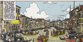 remarques: | à l'aube du premier Empire, un jeune musicien vénitien est pris dans la tourmente qui entoure Bonaparte 1797, Venise où Bonaparte a pris ses quartiers et où il rencontre le jeune vénitien Arno Firenze, pianiste rénommé qui sauvera la vie de Bonaparte à plusieurs occasions contre l'organisation du "pique rouge" (= mouvement anti-bonapartiste soutenu par les anglais et le doge de Venise) Arno aura fort à faire contre Rezzo Corvacchio, l'âme damné du doge qu'il finira par éliminer, mais l'organisation "pique rouge" subsiste toujours >> à voir les extravagances de Pauline, soeur de Bonaparte >>> un nouveau genre brillamment dessiné par Juillard et un scenario qui se tient annexes - couverture, page de garde et 4ème plat du tome 1 - Venise en 1797 Information Arno est une série de bande dessinée historique ancrée dans l'époque napoléonienne créée par Jacques Martin (scénario) et André Juillard (dessins) en 1983 dans Circus et publiée en albums aux Éditions du Lombard à partir de 1984, André Juillard a dessiné les trois premiers volumes (1983-1987), Jacques Denoël les trois suivants (1994-1997), mais ces trois derniers albums seront de piètre qualité |