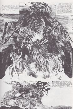 remarques: | introduction par F. Truchaud Cthulhu = celui qui viendra des abysses de l'océan (= dieu de la mer et des horreurs), roman créé par Philipps Lovecraft (1890-1937), peut'être le plus grand auteur du fantastique, adaptation de l'oeuvre de Cthulhu en BD par Breccia dont certains dessinateurs tel que Druillet, Moebius, Formosa et Corben (référence à Den) s'y étaient déjà frottés sans grand succès huit épisodes: 1) le cérémonial sur la base du Necronomicon de l'auteur fou Abdul Alhazed 2) Cthulhu = puissance extraterrestre inconnue 3) la couleur tombe du ciel = le météorite qui contamine la terre 4) l'abomination de Dunwich = l'enfant-monstre créé par Yog-Sothot pour détruire la terre 5) le cauchemar d'Innsmouth, une ville contrôlée par des monstres, cité de silence et de mort, le shoggoth, l'histoire du vieux Zadok 6) le monstre sur le seuil = l'enfant prodigue qui cause la métamorphose des humains, affaire de sorcellerie et d'envoûtement 7) celui qui hantait les ténèbres = Azathoth, le monstre des ténèbres, la secte maléfique 8) la cité sans nom = la race disparue >> des histoires mystérieuses et cauchemardesques toujours plus ou moins mêlées à des créatures monstrueuses, le graphisme est bien sûr difficile à reproduire, mais Breccia est le seul à avoir pu réussir cette expérience avec l'épisode "l'abomination de Dunwich" qui est le mieux dessiné quant aux récits, ils sont aussi parfois difficiles à suivre (plutôt genre impressionnisme), ils reprennent malgré tout assez bien l'atmosphère fétide et lugubre exprimée souvent aussi par le livre diabolique du "Necronomicon" de l'arabe fou Abdul Alzhared trouvé parmi la section des "sciences occultes" de l'université d'Arkham n.b. la plupart des monstres dans ces récits dégagent une forte odeur de poissons à noter Lovecraft avec sa bibliothèque maudite Information a) Cthulhu (prononcé en anglais: /kəˈθuːlu/) est une monstrueuse entité cosmique inventée par l'écrivain américain Howard Phillips Lovecraft dans sa nouvelle l'appel de Cthulhu, publiée dans le pulp Weird Tales en 1928 gigantesque créature extraterrestre endormie depuis des millénaires dans la cité de R'lyeh engloutie sous les flots de l'Océan pacifique, Cthulhu est vénéré tel un dieu par des humains dévoyés et des êtres aquatiques qui lui vouent un culte immémorial par le biais de sculptures antédiluviennes, celles-ci reproduisent sa forme vaguement humanoïde complétée d'une tête de seiche, de tentacules de pieuvre et d'ailes semblables à celles d'un dragon l'écrivain August Derleth désigne sous le vocable "mythe de Cthulhu" l'ensemble des pastiches littéraires qui s'inspirent de l'univers fictionnel de Lovecraft, le terme est resté, contribuant à multiplier les références à la créature dans la culture populaire à travers la littérature, les jeux de rôle et les jeux vidéo b) la bibliothèque maudite Lovecraft ne s'y pas trompé et a souvent fait référence à de vieux manuscrits révélant des secrets que nul homme ne devrait connaître, la plupart de ces ouvrages sont fictifs, mais certains sont "d'authentiques" travaux occultes, il semblerait toutefois que l'Université Miskatonic d'Arkham possède un large panel d'ouvrages ésotériques difficilement trouvables dont de nombreux livres sur le Mythe de Cthulhu chez Lovecraft, le livre maudit, c'est donc celui dans lequel on apprend sur ce qui nous entoure des choses qui auraient mieux fait de rester ignorées c'est un point de contact entre le quotidien prosaïque et une incroyable réalité sous-jacente, entre le monde de l'homme et celui des Grands Anciens, entre l'ordinaire et le fantastique, on sent déjà qu'il est possible de distinguer, au sein de cette bibliothèque maudite, plusieurs catégories de livres qui se différencient par la manière dont fut mis sur pied leur contenu dont entre autre le roman cauchemardesque et les sciences occultes |