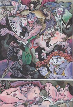remarques: | préface par C. Sampayo, origine et références via Dracula du bain de sang sang produit par la dictature argentine cinq épisodes: 1) la dernière nuit du carnaval (Dracula et Superman) 2) Latrans carnis non admordet >> p. 25 séance de dentiste pour Dracula) 3) un coeur doux et éploré (les amours de Dracula) >> p. 37 la sorcière-vampire 4) je ne suis plus une légende (satire sur la dictature, même Dracula en est dégoûté >> p. 56 du Coca-Cola pour Dracula 5) Poe?, pouaf! (Dracula s'enivre avec le sang de l'ivrogne Poe) >> un album sans texte, uniquement des images en couleur, mais quelle couleur!, peut'être le seul album paru de Breccia en couleur, composé de sketchs humoristes mais réalistes sur Dracula, un très bon graphisme et bonne présentation de l'album avec une biographie détaillée de Breccia en fin d'album |