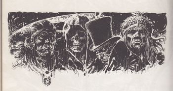 remarques: | l'histoire des 4 cavaliers tirée des sept sceaux de l'apocalypse selon St- Jean (C.6 V 1-8): - la guerre sur un cheval roux, description de la guerre, une tuerie qui devient juste et profitable par la guerre, un jeu d'échec - la famine sur un cheval noir, la quête de nourriture, le cannibalisme - la peste sur un cheval blanc, la maladie sans échappatoire - la mort sur un cheval gris, la primauté de la mort sur tous les autres cavaliers, car c'est toujours la mort qui a le mot de la fin, toutefois la mort et les autres cavaliers ont besoin de la vie pour exister, donc il faut toujours laisser des survivants >> très bon graphisme en noir&blanc avec une couverture d'album bien réalisée avec un texte acceptable |