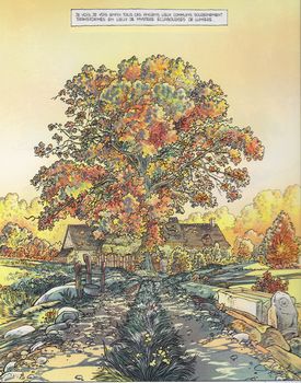 remarques: | temps des vendanges, Grimion erre dans la nature et se fait remarquer par Rose, la fille d'un vigneron qui le prend à son service, rencontre de Grimion avec Trois-Yeux qui était parti à sa recherche >> p. 17 la belle invention de Trois-Yeux pour retrouver Grimion Grimion retrouve Tiennette mariée à Emile, frère de Grimion et qui n'est plus muette, Emile jaloux frappe son frère qui tombe malade >> p.34/35 les rêves de Grimion auprès d'Oda dans le pays de l'arbre, par la suite Tiennette vivra avec Grimion et lui donne un fils, mais Tiennette meurt lors de son accouchement, finalement le bébé grandit et devient le frère de Grimion qui lui ne vieillit plus, plus tard toutefois son frère le quittera pour partir avec Oda, mais grâce à la pierre magique laissée par Oda, Grimion retrouve sa main d'humain et recommence à vieillir >>> un album paru 5 ans après le tome 3 pour continuer la série, c'est un échec: le scenario est désordonné, sans fil conducteur et peu attrayant, quant au graphisme il reste acceptable autant les 2 premiers albums sont intéressants, autant les deux derniers sont décevant malgré quelques vignettes bien executées la série ne sera plus continuée |