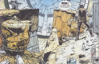 remarques: | cette série dans le BDM est mentionnée "dans l'ombre du soleil" avec le tome 1 intitulé "Rael", mais la série est prise ici sous le nom de Rael des humains dont le mercenaire Raël sont capturés par les sbires de Mme Steiner qui commande une station spatiale après qu'une guerre ait détruit la planète Terre Rael réussira à s'échapper et ce sera une chasse à l'homme dans la station, mais finalement avec d'autres révoltés, Rael renversera le régime de Mme Steiner. >> p. 25 et 31 le symbole de l'aigle (rapport avec Blueberry) >> un scénario incohérent, difficile à suivre et lassant (surtout pour le début), mais un bon graphisme par un des dessinateurs de Blueberry (d'où une étoile pour le graphisme) mais si Wilson est un bon dessinateur, le scénario n'est pas son fort il y aura encore 2 tomes dans cette série "Mantell" (1986) et "Alia" (1989) mais non collectionnés ici |