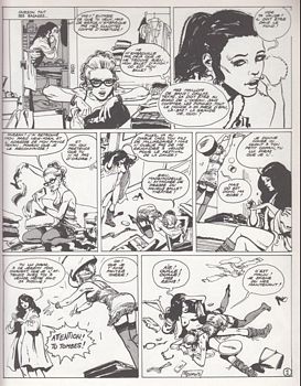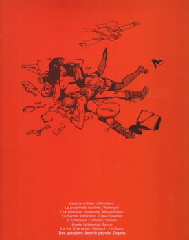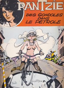 remarques: | >> biographie de Pierre Dupuis >> voir CBD no 12 Peyo+Dupuis les aventures rocambulesques des deux jeunes femmes Pantzie et Ourson à Venise avec le prof. Landibenos, oncle d'Ourson, qui fait de la prospection de pétrole à Venise >> p. 19 dors-je ou souis-je éveillé? mais tout ce petit monde est au prise avec une armée d'agents secrets qui cherchent à s'approprier les découvertes du prof. Landibenos avec aussi l'apparition de l'émir Abou Simbel du Keiwott et du danseur de ballet russe Barichkine qui tombe amoureux de Pantzie >> p.34 on attendait Grouchy, c'était Blücher >> p.38 l'animateur TV Beaudard (allusion à Bouvard) finalement Pantzie découvrira les dessous de l'affaire avec la société FRIM (financial research international marketing) qui a fait courir le bruit de gisement de pétrole à Venise pour faire monter le cours de leurs actions en bourse >> un récit humoristique complètement dingue, si le texte est du vent, on remarquera quand même le style cultivé et raffiné de Dupuis sans omettre son graphisme super-dynamique qui se déroule à 200 km à l'heure dans Venise |
