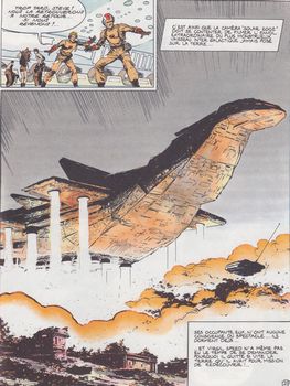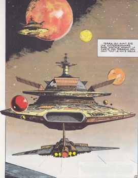 remarques: | >> biographie de Pierre Dupuis >> voir CBD no 12 Peyo+Dupuis Terra 2220, les derniers rescapés de la Terre vivent dans un gigantesque complexe métallique satellisé autour de la Terre, mais celui-ci commence à se détériorer inexorablement >> p. 4 la base satellite Terra Virgil Speed reçoit comme mission de retrouver une nouvelle terre de refuge pour les terraniens grâce à une fusée spécialement construite à cet effet et en inspectant la bonne vieille planète Terre, Speed rencontre des hommes de la planète Kronos, naufragés sur la Terre >> p. 15 l'histoire des kronosiens grâce à la fusée des terriens, la fusée kronosienne peut être réparée et les kronosiens proposent aux terraniens de les transporter sur leur planète Kronos à l'aide de leur vaisseau spatial gigantesque tout se déroule comme prévu, mais le vaisseau kronosien chargé de terriens est attaqué en cours de route par des pirates de l'espace >> p. 47 le vaisseau spatial kronosien dans toute sa splendeur. >> une bonne aventure de science-fiction, mais si le graphisme de Dupuis est bien élaboré, on ne peut pas en dire autant du texte de Filippini |