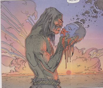 remarques: | histoire d'un monde robotique mis en comparaison avec un monde préhistorique, thème du voyage dans le temps a) le monde robotique avec Pro-Mé le colosse de métal, Hel la reine de la nuit et maîtresse des illusions b) le monde préhistorique où règne la sauvagerie, la chasse, le sang et la survie avec Arkas le chasseur, Calena la dévoreuse d'hommes et Albe la magicienne >> aventures de SF fantastique, petit remake du monde de Laïlah, mais peu intéressant concernant le scénario (un texte peu compréhensible et désordonné), toutefois une petite étoile galactique pour le graphisme du maître Caza (mais c'est un peu du Caza Prisunic) n.b. la série se compose malgré tout de 8 volumes, le 2ème = le grand extérieur (1990) et le dernier = le jour de l'arche (2008) mais non collectionnés ici |