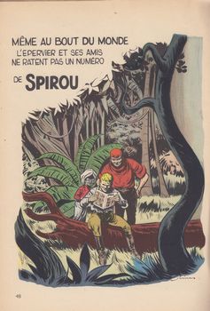 remarques: | des sabotages mystérieux sont effectués sur un barrage en Amérique du Sud dans la vallée interdite l'Epervier Bleu avec son compagnon Larsen enquêtent et découvrent les criminels: le hors-la-loi Pancho Vargas et le traître Marano >> p. 17 un vrai pont de fortune >>> un graphisme assez bien élaboré, mais un scenario très naïf et de petite qualité qui étonne de la part de Sirius |